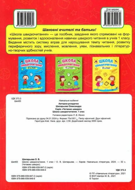 Школа швидкочитання 1 клас Шипарьова О. Торсінг