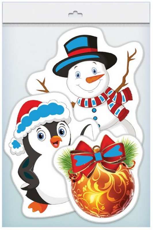 Набір новорічних прикрас Ранок. Набір прикрас до новорічних свят, сніговичок – 11,5х14 см, пінгвінчик -10,5х13 см, новорічна кулька – 9х9 см.