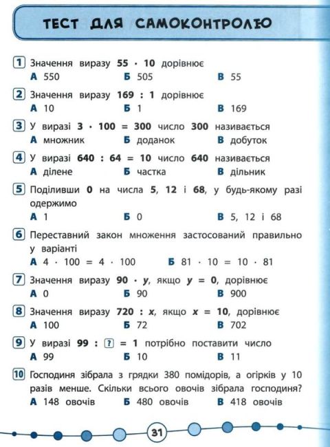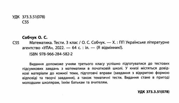 Я відмінник! Математика. Тести. 3 клас / УЛА / ISBN 978-966-28-4582-2