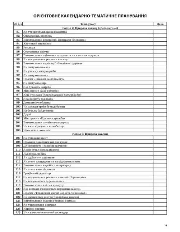 Розподіл годин і тематика уроків відповідають змісту підручника Т. Г. Гільберг, С. С. Тарнавської, Н. М. Павич (Я досліджую світ : підруч. інтегр. курсу для 2-го кл. закл. заг. серед. освіти : у 2-х ч.— К. : Генеза, 2019).