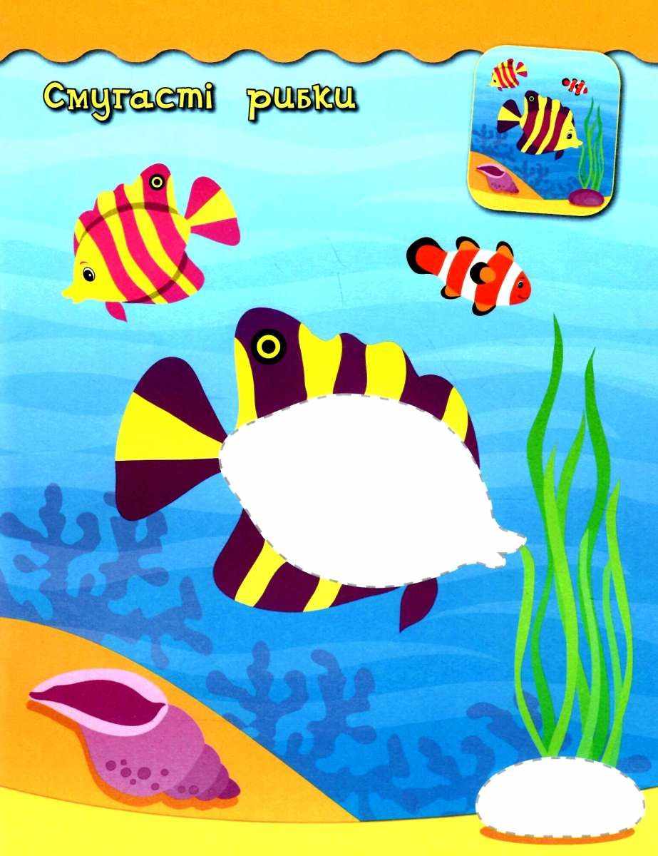 Малюки просто обожнюють гратися з кольоровими наліпками! Саме тому в книзі «Рибка» ми помістили безліч різнобарвних ілюстрацій, які дитина зможе самостійно доповнити: наклеїти кольорових рибок чи пухнасті кульбабки.