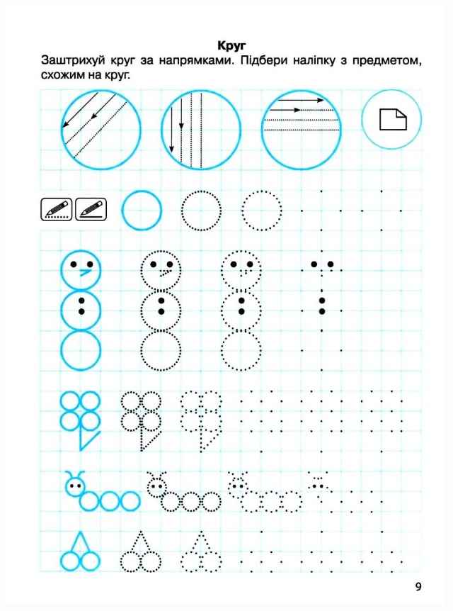 Завдання з посібників цієї серії також сприяють розвитку зорової пам'яті, графічних навичок, логічного мислення і розвитку мовлення.